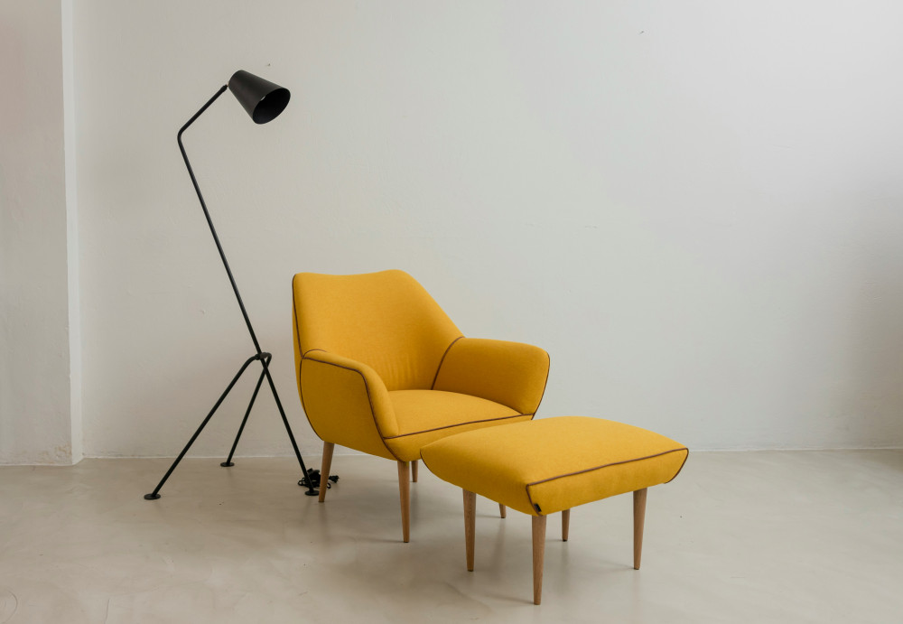 Fodskamlen kan anvendes som støtte til benene eller som et selvstændigt møbel i stuen, og dens proportioner gør den velegnet til at fuldende komfortoplevelsen sammen med de tilhørende stole.